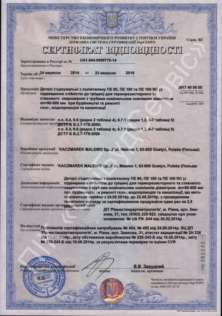 Детали соединительные из полиэтилена PE для водопроводов и канализации