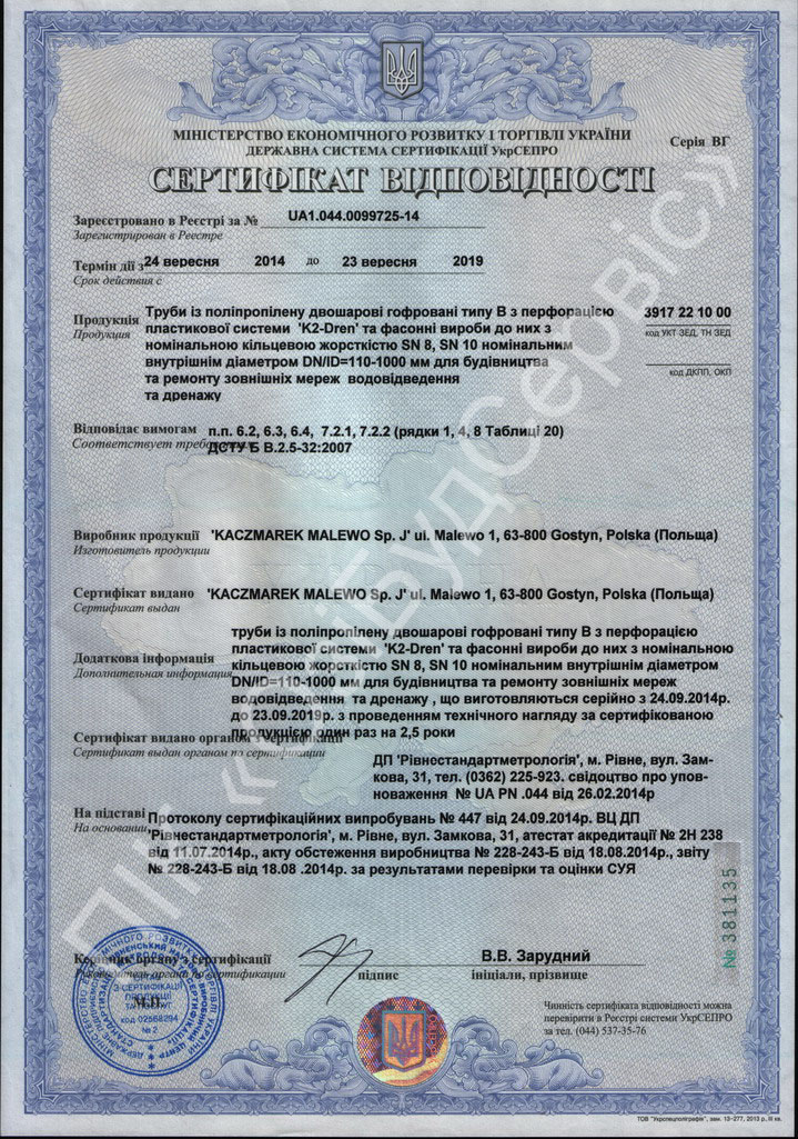 Трубы гофрированные дренажные и фасонные изделия к ним из поливинилхлорида
