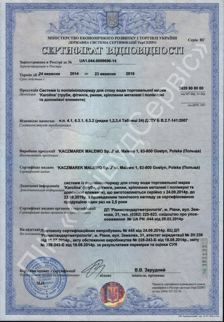 Cистема для стока воды из поливинилхлорида KAROLINA (водосточная система)