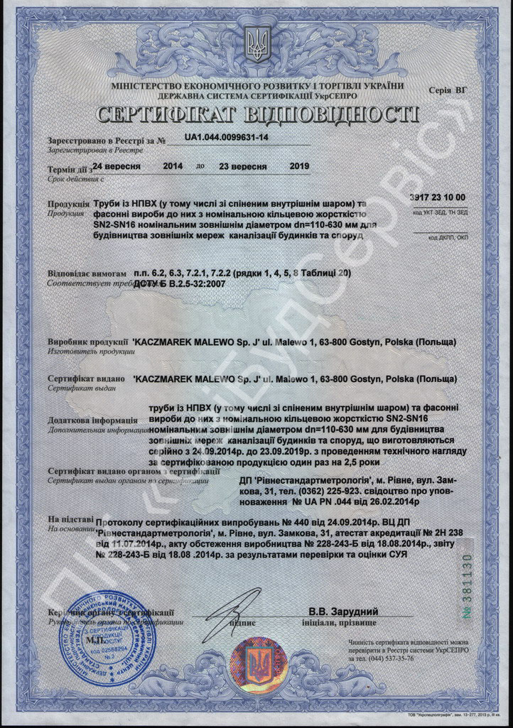 Трубы, фасонные изделия к трубам и колодцам для наружной канализации из поливинилхлорида