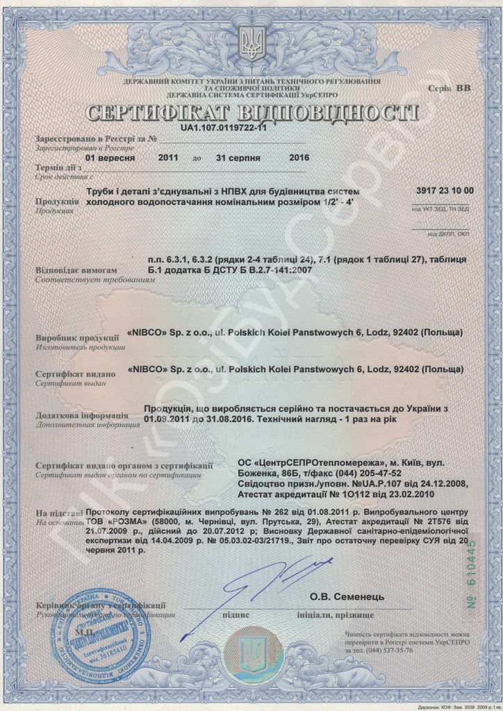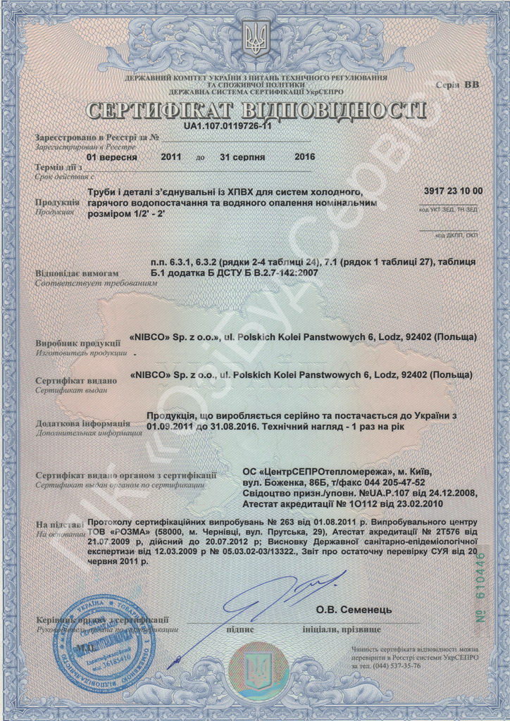 Трубы и детали соединительные из ХПВХ для систем холодного, горячего водоснабжения и отопления